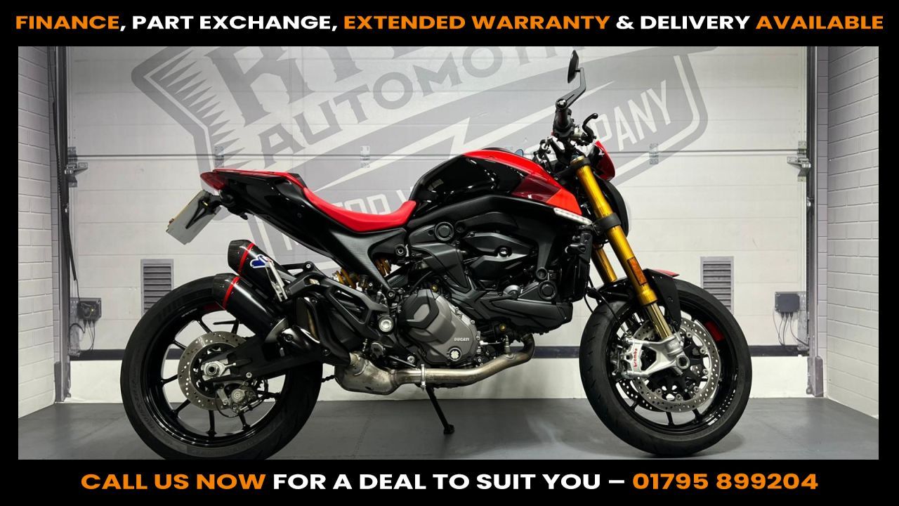 BUY ONLINE 24 HRS A DAY - FINANCE AVAILABLE - ALL TYPES OF CREDIT ACCEPTED - This Ducati Monster 937 SP is in excellent condition with just 2609 miles from new. Stunning 23-plate Ducati Monster SP with just 2609 miles from new. This is the higher-spec, sharper, lighter, better-braking version of the Monster – upgraded with Ohlins, Brembo Stylema brakes, Termignoni exhausts and improved electronics as standard. Comes with 2 keys and a documented service history, showing 2 services completed, with the most recent service carried out just 168 miles ago. Both tyres are in excellent condition and it will come with a fresh MOT and 3-month warranty, extendable up to 3 years for complete peace of mind. Key Features - Datatag security markings - ABS - Ohlins fully adjustable front & rear suspension - Brembo braking system - Fly screen - Rizoma bar-end mirrors - Tank pad - Colour TFT dash - Steering damper - Seat cowl - Termignoni exhaust system - Evotech tail tidy - Rear hugger - Quickshifter (up & down) Why buy this Monster SP? This SP version turns the already-brilliant Monster into a precision weapon. Sharper handling, better feel, upgraded braking and that unmistakable Termignoni soundtrack. Lightweight, fast, agile and dripping in premium components – it's everything a modern Ducati naked should be. We've worked with Close Brothers Motor Finance to bring you a range of incredible finance options on this bike. Questions? Just give us a call or send an email and we're more than happy to help. If you want to see the rest of our stock and customer reviews, check out our website at www.rydermotorcycles.co.uk. you can also follow us on our Facebook page. Or even better, come along and see us.