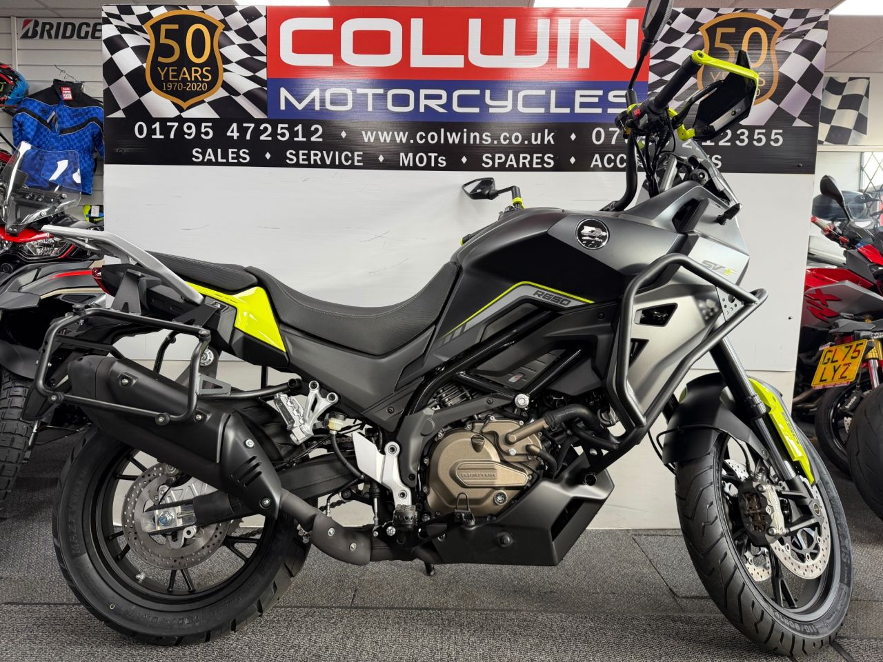 BRAND NEW & IN STOCK NOW!!! Introducing the QJMotor SVT 650, your perfect companion for both on-road adventures and off-road escapades! This versatile midweight ADV Tourer motorcycle from QJMotor is designed for riders seeking a harmonious balance of performance, comfort and affordability. Whether you're cruising through city streets or exploring unbeaten paths, the SVT 650 delivers exceptional experiences with every ride. At the heart of the QJMotor SVT 650 lies a powerful DOHC 8v 645cc V-Twin cylinder engine ensuring impressive efficiency and performance. With a rated output of 56kW (75 Bhp) @ 9000rpm and maximum torque of 65Nm @ 8000rpm, you can expect a thrilling performance that will keep you coming back for more. The Euro 5+ certification ensures that you can embark on your journeys while being environmentally conscientious. The SVT 650's robust engineering includes a 6-speed gearbox with a multiplate wet clutch providing smooth and reliable gear shifts as you tackle various terrains. Its chain final drive adds durability and ease of maintenance, making it a trusty companion for long journeys. Safety and stability are paramount, the SVT 650 comes equipped with dual channel ABS hydraulic disc brakes courtesy of Brembo —Radial 4 piston calipers biting dual 320mm discs at the front and a single caliper on a 260mm disc at the rear. The telescopic USD front suspension paired with a telescopic coil spring oil-damped rear mono-shock ensures comfort, control and remarkable handling, even on rugged terrain. With an elegant design boasting lightweight cast alloy rims and a bold front tyre size of 110/80 R19, complemented by a chunky rear tyre size of 150/70 R17, this bike is built for both style and substance. The dimensions of this remarkable machine measure a length of 2270mm, width of 950mm and height of 1405mm, providing optimal manoeuverability. With a ground clearance of 170mm and a seat height of only 795mm, it assures a comfortable fit for a wide range of riders. Pack up for long rides with ease thanks to its 20L fuel tank, letting you focus on the thrill of exploration without the need for frequent fuel stops. Imagine yourself enjoying the open road with the QJMotor SVT 650—a motorcycle that blends practicality with an adventurous spirit. Whether you're chasing the sunset or conquering new roads, the SVT 650 is ready to make your two-wheel dreams come true. Get ready to embark on unforgettable journeys with a trusted ally that embodies the true essence of adventure! £5699 + OTR EXPENSES!!! Finance available subject to T's & C's. All major debit and credit cards accepted. We also now accept American Express. Please note that all of our stock is HPI clear and come with a multi point health check, PDI service, road test and MOT. 3 years free legal cover included. Visit our website for loads more bikes and scooters!!!