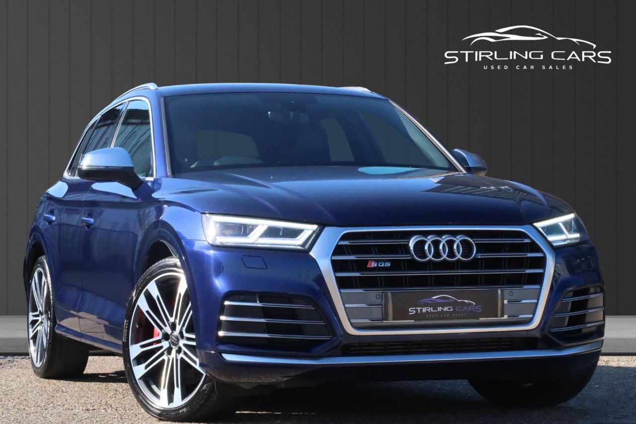 Audi SQ5 3.0 TDI V6 SUV 5dr Tiptronic, a powerful and refined performance SUV presented in excellent condition. Finished in the stunning Navarra Blue, this vehicle has had just one previous owner and comes with full service history, two keys, and includes MOT and warranty for complete peace of mind. This high-spec SQ5 is equipped with a range of premium features including satellite navigation, rear view camera, media interface, and the upgraded Bang & Olufsen sound system delivering exceptional audio quality. The interior boasts SQ5 sports seats, offering both comfort and a sporty feel, perfectly matching the vehicle's dynamic performance. Externally, the car sits on polished alloy wheels which complement the Navarra Blue finish beautifully, giving it a strong and stylish road presence. Finance options are available with competitive low rates, including PCP and HP packages tailored to suit your needs. A full walkaround video is also available to view on our website. A well-maintained, high-performance SUV that offers a perfect balance of power, luxury, and practicality, ready to drive away. ALL CARS COME WARRANTED WITH THE OPTION TO EXTEND FOR UP TO 3 YEARS AT A LOW COST. ALL VEHICLES INCLUDE BREAKDOWN COVER FOR THE FULL TERM OF THE WARRANTY. Warranty extensions can also be paid over 10 monthly instalments for added convenience. We now also offer a tyre, alloy and smart repair package; please see the pictures or contact us for more information. This package is available for 3 years at £989 per year and covers any alloy, tyre, or smart repair damage your vehicle may incur. www.warrantysolutionsgroup.co.uk At Stirling Cars, we take pride in offering over 100 quality used vehicles, each carefully selected and prepared to the highest standard. Every car goes through a thorough inspection process, comes with a valid MOT, and includes a comprehensive warranty for your peace of mind. We believe in doing things right from the moment a car arrives to the moment you drive it away. It’s prepped to perfection and ready to go.