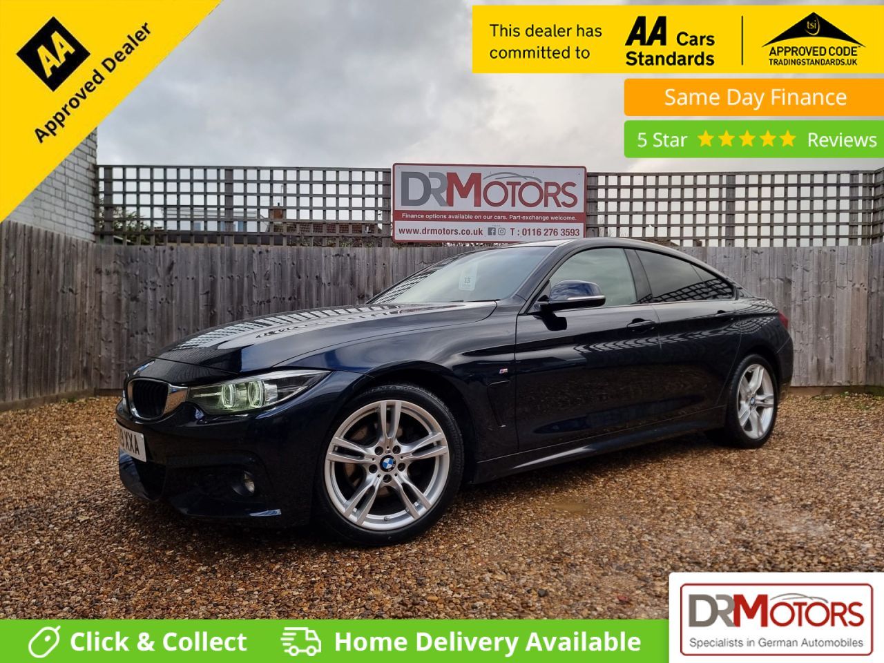 Introducing this stunning BMW 4 Series Gran Coupe 2.0 420d M Sport Hatchback, presented in excellent condition and ready to drive away today. This vehicle comes with our exclusive March Special Offer, including an 18 Months Nationwide Gold Warranty in the price for complete peace of mind. With just one former keeper from new, this automatic model is ULEZ compliant and offers a superb driving experience combined with impressive fuel efficiency and low running costs. It is in very clean condition inside and out and truly must be seen to be appreciated – the first to view will buy. The car benefits from a good service history with four recorded services and has an MOT valid until February 2027. It comes equipped with satellite navigation, heated leather seats, front and rear parking sensors, Bluetooth handsfree connectivity, DAB radio, cruise control, USB and AUX connections, privacy glass and stylish 18-inch alloy wheels. The electric tailgate provides easy access to a generous boot space, making this coupe as practical as it is sporty. Supplied with two keys and finished in a lovely colour combination, this vehicle represents excellent value for money. We have over 150 DR Approved Used Cars on site and are proud winners of the CarGurus Top Rated Dealer Award for 2020, 2021 and 2022. Finance options are available on this vehicle, and debit cards are accepted. A £149 administration charge applies in addition to the vehicle price. Pay now and drive away in your new car today. Every vehicle is fully Experian HPI clear and comes with a Nationwide Warranty option to upgrade to a 1 Year Gold Warranty for £399 or a 2 Year Gold Warranty for £599. Part exchange is welcome, and we are happy to take a deposit to secure the car. Viewings are by appointment only, so please call our Sales Manager Jason on 07858 818 903 at any time, day or night, to arrange a viewing. For full finance details, please visit www.drmotors.co.uk. At DR Motors, we are proud to be both a Trading Standards Approved Garage and an AA Approved Dealer, reflecting our commitment to quality, integrity and customer satisfaction. Every car also includes 12 Months Free AA Breakdown Cover. Every effort has been made to ensure the accuracy of the information provided; however, errors may occur. Please speak to a member of our team to confirm any details that may affect your decision to purchase.