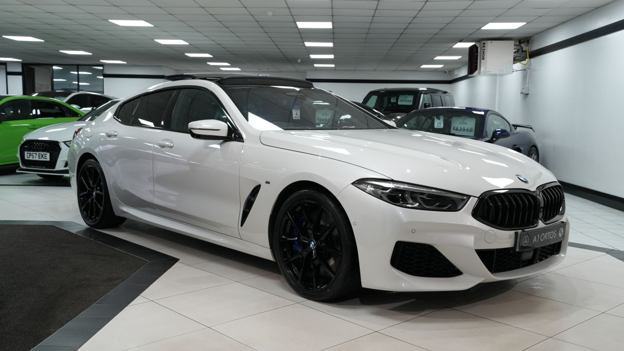 IMPECCABLE 8 SERIES GRAN COUPE JUST ARRIVED INTO STOCK! COVERING 26K MILES FROM NEW BACKED WITH A FULL BMW MAIN DEALER SERVICE HISTORY! INCLUDES THE MAGNIFICENT PREMIUM PACKAGE (£2100 COST OPTION!) SIMPLY BEAUTIFUL EXAMPLE! FINISHED IN MINERAL WHITE METALLIC! SPEC INCLUDES, ELECTRIC PANORAMIC GLASS SUNROOF, M SPORT TECHNIC PACKAGE, CRAFTED CLARITY WITH GLASS APPLICATION FOR INTERIOR ELEMENTS, ANTHRACITE ALCANTARA INDIVIDUAL HEADLINING, TECHNOLOGY PACKAGE, SOFT CLOSE AUTOMATIC DOORS, PARKING ASSISTANCE SYSTEM PLUS (360 SURROUND CAMERA), HEATED LEATHER STEERING WHEEL, HIGH GLOSS SHADOWLINE WITH EXPANDED SCOPES, HEATED FRONT AND REAR SEATS, FRONT SEAT COMFORT PACKAGE, ( BUCKET SEATS ) FRONT CLIMATE SEATS, HARMAN/KARDON PREMIUM SURROUND SOUND, UPGRADED 20 INCH JET BLACK 728M ALLOY WHEELS, M SPORT BRAKES, AUTOMATIC FOUR ZONE CLIMATE CONTROL, M SEAT BELTS, ADAPTIVE LED HEADLIGHTS, ACTIVE GUARD, HEAD UP DISPLAY, COMFORT ACCESS SYSTEM, CLIMATE COMFORT WINDSCREEN, WIRELESS SMARTPHONE CHARGING, DRIVING ASSISTANT PROFESSIONAL, M SPORT DIFFERENTIAL! PANORAMIC ROOF, PAN ROOF, GLASS ROOF, EXCEPTIONAL VALUE FOR MONEY, EARLY VIEWING IS ESSENTIAL TO AVOID DISAPPOINTMENT, VERY BEST COLOUR COMBINATION, COMPREHENSIVE WARRANTY OPTIONS AVAILABLE, AA BREAKDOWN COVER AVAILABLE, STUNNING SHOWROOM CONDITION, MUST BE SEEN NOT TO BE MISSED, BE VERY QUICK THIS GEM WILL SOON GO!, VIEW MORE PICS ON OUR WEBSITE, PLEASE CALL FOR FULL SPEC, SIMPLY STUNNING! Every effort has been made to ensure the Vehicle details are correct, however errors may occur please check details with our Sales Team before visiting