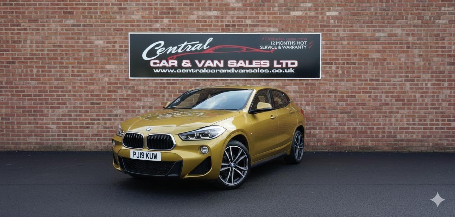 March 2019 BMW X2 SDRIVE18 M-SPORT DCT 7 Speed Automatic Euro 6 Finished in gleaming Galvanic Gold with Alcantara trim. The car has covered just 35721 Miles from new with 2 services recorded and 0 former keepers and the car comes with both keys, This car is breathtaking a real head turner in the unique and most favoured colour! The Spec on this car makes for a real rewarding and inviting drive! The X2 is Ulez Compliant and costs just £195 for 12 months road tax Insurance Group 23E and mazing economy This car ticks all the boxes as a family SUV or city cruiser, Thios example has the 1.5 Turbocharged engine This engine produces 140 horsepower and 220 Nm of torque. It's paired with a 7-speed automatic DCT Steptronic transmission, The car has a healthy speciation that includes Yellow Sport Plus Stitching, Leather Dashboard, Auto Lights, X4 Electric Windows, Electric Door Mirrors, Cruise Control, Adjustable Steering Colum, M-Sport Multi Function Steering Wheel, Driver Modes, Electronic Parking Brake, BMW I-Drive, Pan Roof, Centre Armrest, x3 BMW Services on Digital Record, On Board Computer, Auto Wipers, Air Conditioning, Heated Seats, Collision Assist, Cupholders, Radio DAB, CD MP3, Bluetooth, isofix The car comes with a nationwide warranty which covers you across the U.K. we can arrange excellent rates of finance and you can apply online at www.centralcarandvansales.co.uk. We can take credit & debit card payments and we can take your car, van or motorbike in part exchange for any more details or to arrange a test drive or viewing please call us on 01524 67222 or 07407358162. Please note we are selling used cars and to expect some age related marks and ware if in doubt please don't hesitate to call and ask for more info. The car comes with a nationwide warranty which covers you across the U.K. we can arrange excellent rates of finance and you can apply online at www.centralcarandvansales.co.uk. We can take credit & debit card payments and we can take your car, van or motorbike in part exchange for any more details or to arrange a test drive or viewing please call us on 01524 67222 or 07407358162. Please note we are selling used cars and to expect some age related marks and ware if in doubt please don't hesitate to call and ask for more info.
