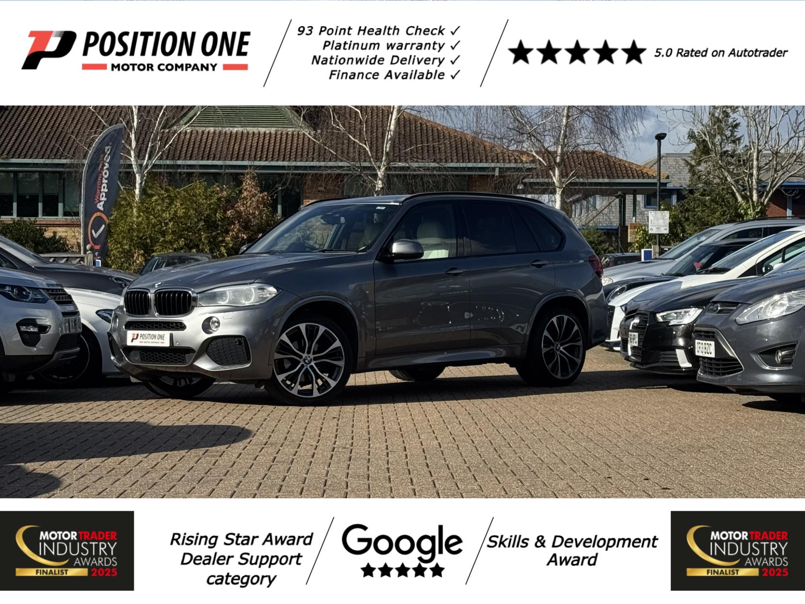 Position One Motor Company are proud to present this BMW X5 3.0 30d M Sport finished in Space Grey, a premium SUV that combines strong performance, luxury and everyday practicality.