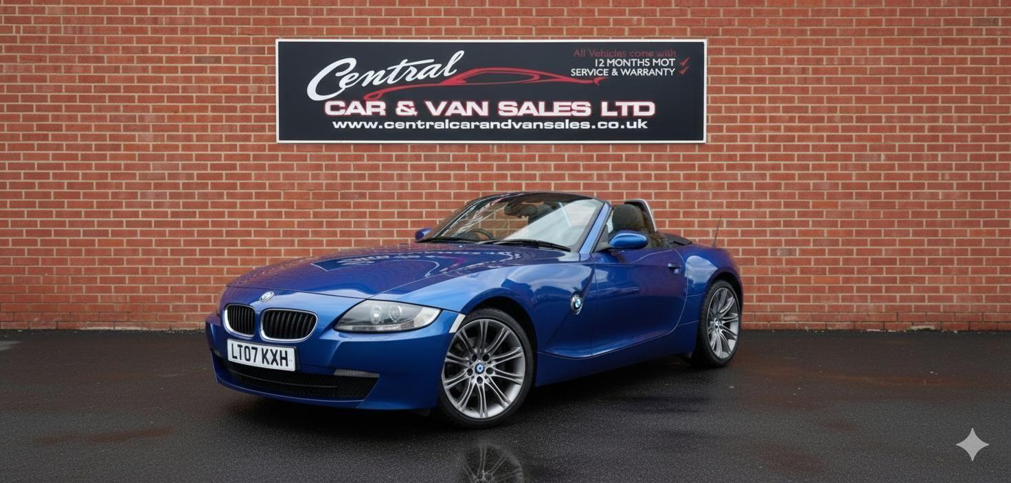 Here we have another amazing used vehicle from central car and van sales in Morecambe. Here we have a March 2007 BMW Z4 2.0l Petrol with 106k, finished an immaculate midnight blue with grey 17" alloys wheels and half leather interior trim. The 2007 convertible is in incredible condition inside and out whilst also putting out a perfect drive with a very responsive feel. The z4 is ULEZ exempt so feel free to hit the open road with roof down anywhere you like, road tax is just £335 for the year and is insurance group 37A. The MPG returns 26.2 urban, 50.4 extra urban and 37.7 combined. The z4 produces a nice drive in style and will not disappoint with its nice specification including, power steering, climate control, half leather trim, 2x electric windows, electrically adjustable door mirrors, anniversary badging 17" alloy wheels. PLEASE NOTE: The BMW has a category deemed as a category N, which is now fully repaired professionally and will pass an MOT at the time of sale, the car will also receive an oil service and will be warrantied. The car comes with a nationwide warranty which covers you across the U.K. we can arrange excellent rates of finance and you can apply online at www.centralcarandvansales.co.uk. We can take credit & debit card payments and we can take your car, van or motorbike in part exchange for any more details or to arrange a test drive or viewing please call us on 01524 67222 or 07407358162. Please note we are selling used cars and to expect some age related marks and ware if in doubt please don't hesitate to call and ask for more info. The car comes with a nationwide warranty which covers you across the U.K. we can arrange excellent rates of finance and you can apply online at www.centralcarandvansales.co.uk. We can take credit & debit card payments and we can take your car, van or motorbike in part exchange for any more details or to arrange a test drive or viewing please call us on 01524 67222 or 07407358162. Please note we are selling used cars and to expect some age related marks and ware if in doubt please don't hesitate to call and ask for more info.
