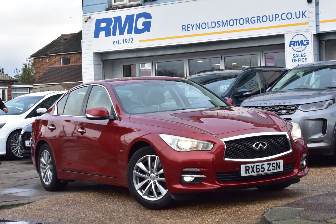 Discover this 2015 Infiniti Q50 d Executive, a sophisticated saloon that offers an exceptional blend of performance and efficiency. This model boasts a powerful yet economical 2.2 litre diesel engine, ensuring a smooth and responsive driving experience. Inside, you'll find a wealth of features designed for your comfort and convenience, including dual zone climate control with auto recirculation, allowing both driver and passenger to set their preferred temperatures. Stay connected on the go with seamless Bluetooth mobile connectivity, and navigate tight spaces with ease thanks to the integrated rear view camera and front and rear parking sensors, all part of the comprehensive parking assistance system. This Infiniti Q50 Executive is designed to impress with its outstanding running costs. Achieving an impressive 64 miles per gallon, it offers remarkable fuel economy that will help keep your running expenses down. Furthermore, its low CO2 emissions contribute to a more environmentally conscious drive. The Q50 also benefits from a low insurance group, making it an affordable choice for many drivers. Practicality is also a strong suit, with a large boot space providing ample room for luggage or shopping, demonstrating that this vehicle offers a superior ownership proposition compared to similar models. Finished in Venetian Ruby, comes with documented service history and will have a fresh service when required from our in house technicians who also perform a PDI upon arrival. With only 78000 miles on the clock, this car is in exceptional condition for its age and mileage. All our cars have a minimum 6 months MOT, so not to worry, we have you covered! . Reynolds motor group is a family-run car dealership, proudly serving the Essex community from our two locations in Basildon and Southend. With a commitment to providing exceptional customer service, we strive to make your car buying experience as easy as possible. With years of experience in the industry, our experienced team understand the stress of car buying and financing. We are car finance specialists, offering competitive rates tailored to your specific needs. Whether you have excellent credit or a less-than-perfect history, we work tirelessly to secure the best financing options for you. At our dealership, we take pride in our extensive inventory of quality vehicles, meticulously inspected to meet our high standards. We believe that exceptional customer service is the cornerstone of our success. Our friendly and professional staff are here to help! ** Vehicles advertised and sold at our BASILDON branch are subject to a £99 admin fee - SOUTHEND has NO admin fee **
