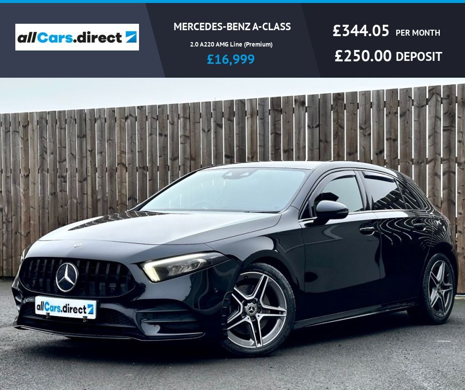 Fantastic condition! This 2019 Mercedes-Benz A Class A220 AMG Line (Premium) offers a refined driving experience with its powerful 2.0L petrol engine. As a Euro 6 compliant vehicle, it meets stringent emission standards. This particular model benefits from the desirable AMG Line trim and the Premium Package, which includes convenient Keyless Entry. You'll also appreciate the advanced LED High Performance Headlamps with integrated LED Daytime Running Lights, ensuring excellent visibility. For seamless connectivity, it features a Dual Bluetooth Interface with two Type C USB ports. Parking is made easier with the 180 degree view reversing camera and parking guidelines, and the Mercedes-Benz Sound System delivers 100W of clear audio. Experience impressive performance with this A Class, capable of accelerating from 0-60mph in just 6.9 seconds. This swift acceleration demonstrates how this Mercedes-Benz A Class offers a more dynamic drive compared to many other vehicles in its class. The combination of the AMG Line styling, the Premium Package features, and the potent 2.0L engine creates a compelling package for those seeking a premium compact car. Comes with privacy glass, heated front seats, upgraded exhaust system, cruise control, multi functional steering wheel controls, trip computer, Sat Nav and DAB Radio. This car has clearly been very well looked after. Only 2 owners from new with the most recent owner having had it since April 2022. Lovely to drive with ample room for passenhers and luggage alike. Serviced at 9015 miles at Merc, at 16332 miles at Merc (Oil, Oil filter, Brake fluid, Dust filter), at Arnold Clark at 23612 miles, at Arnold Clark at 32736 miles, at Arnold Clark at 42604 miles, at Arnold Clark at 49585 miles. This car comes with the All Cars Direct peace of mind package which includes 6 months warranty. The warranty is electrical and mechanical including parts and labour. A minimum of 6 months MOT, an 86 point quality inspection and service. The car will be prepared to the highest standard possible both mechanically and cosmetically. Please take the time to check our feedback & many happy customer reviews. We welcome any inspection and we also collect from the train station and Airport. Competitive finance rates available covering all credit levels.