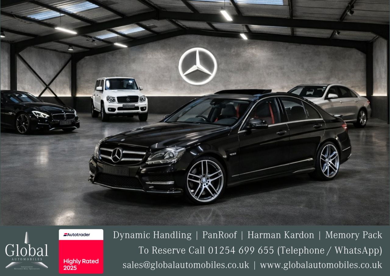 Buy with confidence from an Award Winning Independent Mercedes-Benz Specialist! We are delighted to offer our beautiful Mercedes C Class C350 CDi "AMG Sport Plus" Automatic 3.0 V6 Turbo Diesel Saloon finished in the highly popular "Obsidian Black Metallic" and fitted with an Artico Anthracite Leather / Alcántara interior (Memory Electric and Heated) with matching door cards. This vehicle is a "Facelift Model" and is supplied with its Original Manuals, Comprehensive Mercedes-Benz and Specialist Service History Record, 12 Month MOT Supplied, HPI Clearance Certificate and a Full and current V5 Logbook. The all important Automatic Transmission Service has been performed. The Specification; AMG Sports Plus Package, AMG Styling Package, Dynamic Handling Package, AMG Alloy Wheels, Panoramic Tilt / Slide Glass Sunroof, Harman Kardon Premium Surround Sound System with LOGIC7, COMAND Media Interface; Post Code Entry Navigation, Traffic Sign Recognition Cameras, Bluetooth Audio Streaming, Bluetooth Telephone, CD / DVD Player, Radio plus Multiple Media Inputs. Intelligent Lighting System (iLS), Automatic High Beam Assist (iHC) and Bi Xenon Headlamps with Signature LED Daytime Running Lamps. Compartment Package, Equipment Package, Mirrors Package, Memory Electric / Heated Sport Seats, Rear Reverse Camera with Parking Guidance (Front / Rear - Acoustic and Visual Parking Sensors), Tyre Pressure Loss Warner, Power Folding Mirrors, Aluminium Interior Trim, Heighten Theft Protection, Rear Seatbelt Indication Status, Automatic Child Seat Recognition, Interior and Exterior Automatically Dimming Mirror, Automatic Headlamps, Fuel Tank with Larger Capacity, Leather Multi Function Steering Wheel with Gear Shifter, Dual Cup Holder, Rain Sensor Wipers, Dual Zone Climate Control with Air Conditioner plus many more features. We supply a complimentary warranty. This vehicle is a joy to drive and the first person to see and test drive will be buying this super example. For further details, please contact our sales team on 01254 699 655 - Ref No - 31 - Vehicle currently in use by our director, please call to arrange an appointment to view. Mileage will rise as in daily usage. Part Exchange? We would love to hear what you have to trade! Established in 1985 We are a family run Mercedes-Benz Specialist - Global Automobiles is one of the leading Mercedes-Benz Specialist offering Car Sales and Servicing - Conveniently located in the town centre of Blackburn we are just 5 minutes from the M65 enabling great road connections from the south and north of the country - Please call 01254 699 655 - Vehicles can be secured with a small deposit - BB2 3RG - Every effort has been made to ensure the accuracy of the above advert information, but errors may occur. Many vehicles use a man made substitute for leather which is widely referred to as leather, please take this into consideration when purchasing your next car.