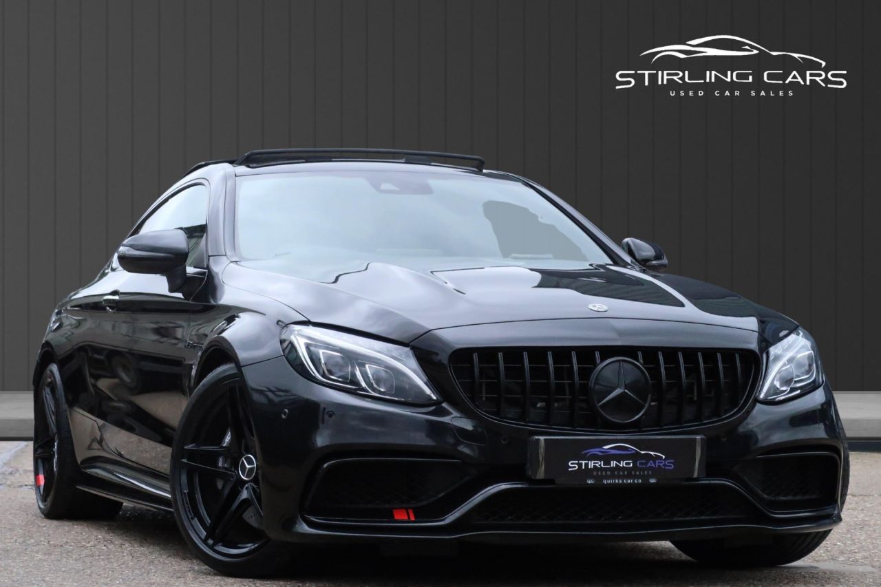 2018 (18) Mercedes-Benz C-Class C63 AMG Premium Coupe 4.0 V8 BiTurbo 2dr SpdS MCT Euro 6 (s/s) 476 ps. A stunning example of this high performance coupe, presented in excellent condition with 3 previous owners and full Mercedes main dealer and specialist service history. Powered by the incredible 4.0 litre V8 BiTurbo engine producing 476 ps, paired with the smooth and responsive AMG Speedshift MCT automatic gearbox, this C63 delivers breathtaking performance along with everyday usability. This Premium model comes with an excellent specification including panoramic sliding glass roof, Burmester sound system, heads up display, rear view camera, heated seats and satellite navigation. The car also benefits from gloss black alloy wheels and gloss black grille, giving it an aggressive and stylish road presence. Supplied with MOT and warranty included for complete peace of mind, along with 2 keys. A very well maintained and highly desirable AMG coupe that offers true V8 performance and luxury in one package. Ready to drive away. ALL CARS COME WARRANTED WITH THE OPTION TO EXTEND FOR UP TO 3 YEARS AT A LOW COST. ALL VEHICLES INCLUDE BREAKDOWN COVER FOR THE FULL TERM OF THE WARRANTY. Warranty extensions can also be paid over 10 monthly instalments for added convenience. We now also offer a tyre, alloy and smart repair package; please see the pictures or contact us for more information. This package is available for 3 years at £989 per year and covers any alloy, tyre, or smart repair damage your vehicle may incur. www.warrantysolutionsgroup.co.uk At Stirling Cars, we take pride in offering over 100 quality used vehicles, each carefully selected and prepared to the highest standard. Every car goes through a thorough inspection process, comes with a valid MOT, and includes a comprehensive warranty for your peace of mind. We believe in doing things right from the moment a car arrives to the moment you drive it away. It’s prepped to perfection and ready to go.