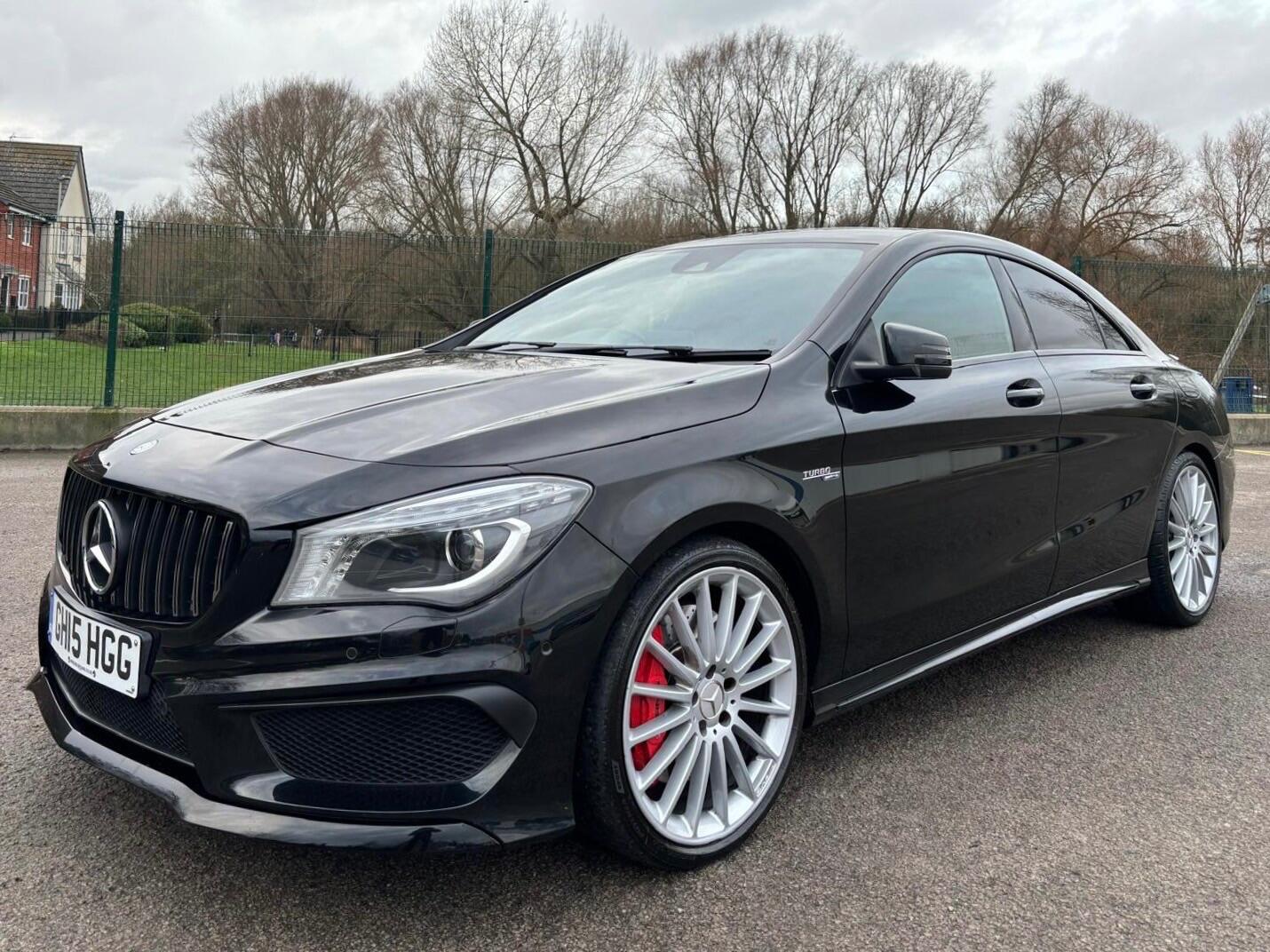 Mot till:9/08/2026, FSH BY MERCEDES, 3 former owners from new, AUTOMATIC, led white side lights, cruise control , stop start air-conditioning automatic headlights front and rear fog light, advanced technology, multimedia connectivity aux USB Bluetooth, rear parking sensors, This 2015 Mercedes Benz CLA45 AMG is presented with a clear vehicle history check, offering peace of mind for its next owner. This striking AMG model boasts a powerful 2.0 litre petrol engine paired with a four wheel drive system, ensuring dynamic performance. It meets Euro 6 emission standards and features automatic climate control for a comfortable cabin environment, along with a centre armrest that includes a twin cup holder and a through loading facility. The car also benefits from Headlight Assist for automatic headlight activation and front parking sensors to aid manoeuvrability. The CLA45 AMG truly stands out with its impressive acceleration, achieving 0 to 62 miles per hour in just 4.6 seconds. This rapid acceleration demonstrates how this vehicle offers a more exhilarating driving experience compared to many other cars in its class. Furthermore, the inclusion of Bluetooth connectivity allows for seamless integration of your devices, enhancing both convenience and entertainment on every journey. stock code:114015, 110gbp doc fees applies, low finance rates available on our newer cars in house. Specification information is supplied by CAP,HPI and may vary to the actual car. DEAR FINANCE CUSTOMERS Our finance companies we use for you are FREE YES FREE for you to arrange via Cg Motorlands website.. we will then attach a 210 for an Rac warranty with it which can be also extended if required. IF you decide to arranged OUTSIDE of our website finance company. It is compulsory to pay there charges what ever they will charge you/usplus ours standard 320 which as part of a package BUT WE will ALSO give you as a bonus an Rac warranty with it which can be also extended if required.