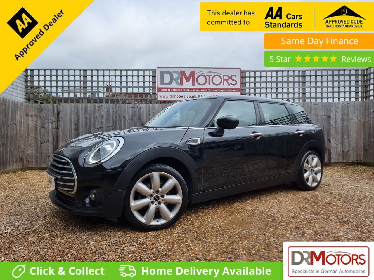 Discover this stunning MINI Clubman 1.5 Cooper Exclusive Estate, a stylish and practical 6-door petrol model that offers the perfect blend of performance, comfort and efficiency. As part of our February Special Offer, this vehicle comes with an 18 Months Nationwide Gold Warranty included in the price, giving you complete peace of mind from day one. It is ULEZ compliant, making it ideal for city driving, and is presented in very clean condition inside and out — truly a car where the first to see will buy. This lovely example benefits from good service history with four recorded services and has an MOT valid until February 2027. It comes with two keys and is packed with premium features including satellite navigation, heated leather seats, rear parking sensors, Bluetooth handsfree connectivity, cruise control, DAB radio, and USB/AUX connection. The striking 18-inch alloy wheels and beautiful colour combination enhance its standout appearance, while the spacious boot and 4-door practicality make it an excellent everyday choice. The 1.5 petrol engine delivers impressive fuel efficiency and low running costs, making this car as economical as it is enjoyable to drive. It represents excellent value for money and is ready to drive away today. We offer flexible finance options to suit your needs, and with over 150 DR Approved Used Cars on site, you are sure to find the perfect vehicle. We are proud winners of the CarGurus Top Rated Dealer Award for 2020, 2021 and 2022, reflecting our commitment to customer satisfaction. Debit cards are accepted, and part exchange is very welcome. All vehicles are fully Experian HPI clear and come with a nationwide 6-month Gold Warranty as standard, with upgrade options available to 1 year for £399 or 2 years for £599. Every vehicle includes 12 months free AA Breakdown Cover for additional reassurance. Please note there is an added administration charge of £149 in addition to the vehicle price. Pay now and drive away in your new car today. We are able to take a deposit to secure this vehicle. Viewing is by appointment only, so please call our Sales Manager Jason on 07858 818 903 to arrange a viewing at any time, day or night. For full finance details, please visit www.drmotors.co.uk. Every effort has been made to ensure the accuracy of the information above; however, errors may occur. Please check with a salesperson regarding any details that may affect your decision to purchase. At DR Motors, we are proud to be both a Trading Standards Approved Garage and an AA Approved Dealer, demonstrating our commitment to quality, integrity and customer satisfaction.