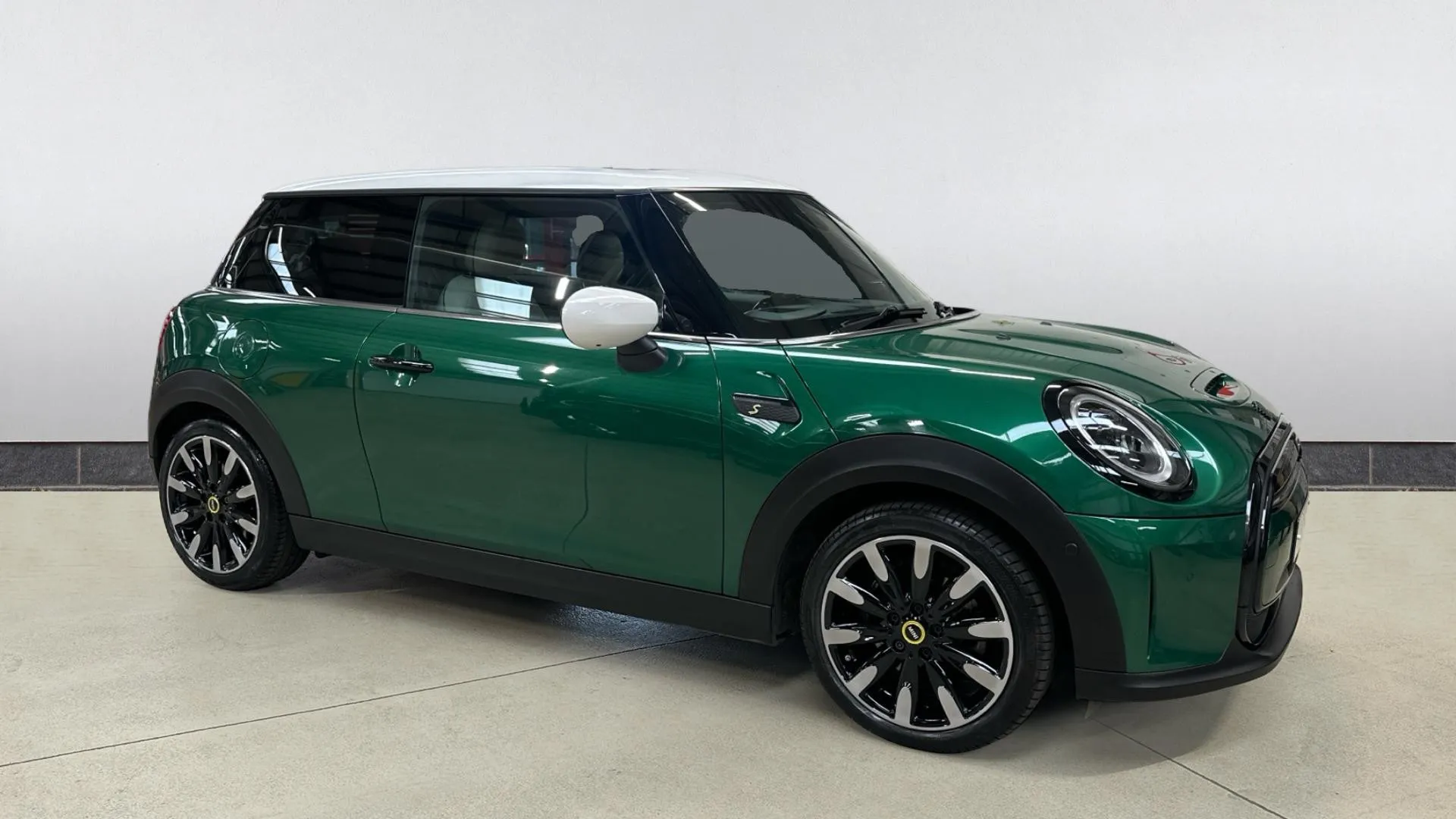 Mini Hatchback Cooper S Level 3 Electric (Green) A premium electric hatchback offering sporty performance with a distinctive design. Includes a panoramic glass sunroof, sat nav, heated seats, cruise control, Bluetooth and digital radio. Optional extras: British Racing Green paint, Piano Black exterior trim, white roof and mirror caps, sun protection glazing (£550.00). Minimum 12-month warranty. MOT due 20/01/2027.