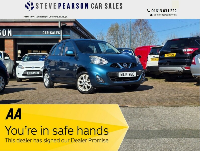 - 12v Power SocketAdjustable SteeringAir ConditioningAlloy WheelsBluetoothBody Coloured BumpersCd PlayerCentral LockingClimate ControlCruise ControlCup HoldersElectric Windows/mirrorsEspFolding Rear SeatsFor More Information Please Telephone Or Pop In For A Cup Of Tea! Our Showroom And Floodlit Forecourt Are Open 7 Days A WeekIsofix Anchor PointMp3Please Take A Look At Our Testimonials On Our Website And Buy In Confidence From A Long Established Family Firm At Www.spcarsales.co.uk Where We Have Over 60 Cars In StockPower SteeringProfessionally Valeted And Fully Hpi Checked. We Welcome Part Exchange And Can Offer Great Finance DealsRadioSatellite NavigationSpeakersSteering Wheel ControlsSteve Pearson Car Sales Are Pleased To Present This Low Mileage Nissan Micra 1.2 Acenta Automatic 5 Door In Metallic Blue. Only 2 Former Keepers With Full Service History. All Usual Nissan Refinements Include... AbsTameside's Finest Collection Of Low Mileage Quality CarsTouch Screen Media SystemTraction Control Etc..... Looks And Drives Superb. This Car Comes With 2 Keys