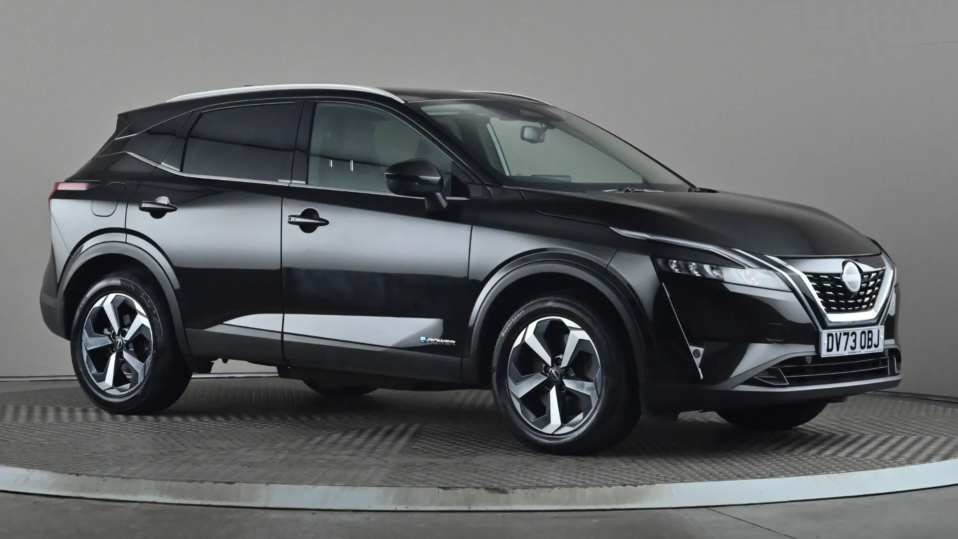 The Nissan Qashqai 1.5 E-Power N-Connecta Auto in black is a standard car featuring Blind Spot Monitoring, Parking Sensors, Cruise Control, Lane Departure Warning, Sat Nav, Traffic Sign Recognition, Apple CarPlay, Android Auto, Bluetooth, Privacy Glass, and Automatic Climate Control. It comes with a minimum 12-month warranty.