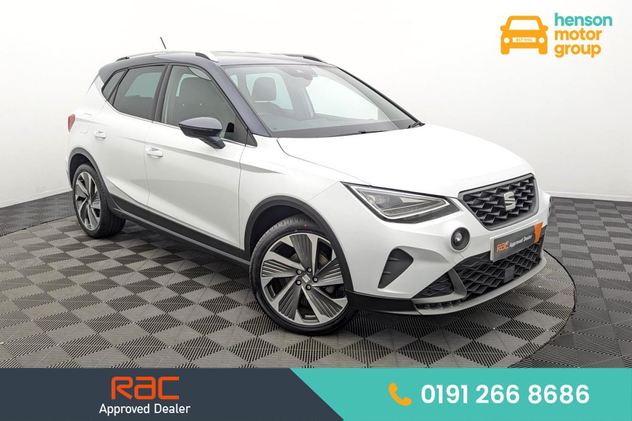 Henson Car Store presents the SEAT ARONA 1.0 TSI FR Sport SUV 5dr Petrol Manual Euro 6 (s/s) finished in White, this car comes with service history. Experience sporty styling, modern tech, and agile performance with this 2023 SEAT Arona 1.0 TSI FR Sport. Powered by the efficient Euro 6 1.0-litre TSI petrol engine and paired with a slick 6-speed manual gearbox, it delivers a responsive and economical drive ideal for both city routes and longer motorway journeys. The FR Sport trim adds a premium feel with its athletic exterior design, distinctive FR detailing, and upgraded interior comforts. Inside, you'll find supportive sports seats, a digital cockpit, and a high-resolution infotainment system with smartphone integration. The raised SUV driving position provides excellent visibility, while compact dimensions make it effortless to park and navigate tight streets. Henson Car Store is the latest addition to Henson Motor Group, offering a hand-picked selection of up to 500 quality used vehicles. Our prices are checked daily for exceptional value, with same-day collection available. We take pride in delivering excellent service and outstanding value. As an RAC Approved Dealer, every vehicle undergoes an 82-point RAC inspection. Each car includes a complimentary warranty, new MOT, full history verification, and expert servicing by our qualified technicians - all prepared to the highest standards. We offer market-leading part-exchange valuations, settle existing finance, and provide flexible finance options tailored to all budgets and credit profiles. With no admin fees and new vehicles arriving daily, we aim to make your car-buying experience smooth and hassle-free. We also offer nationwide delivery, plus personalised videos and images on request. To arrange a test drive contact our team on 0191 266 8686 - open 7 days a week.