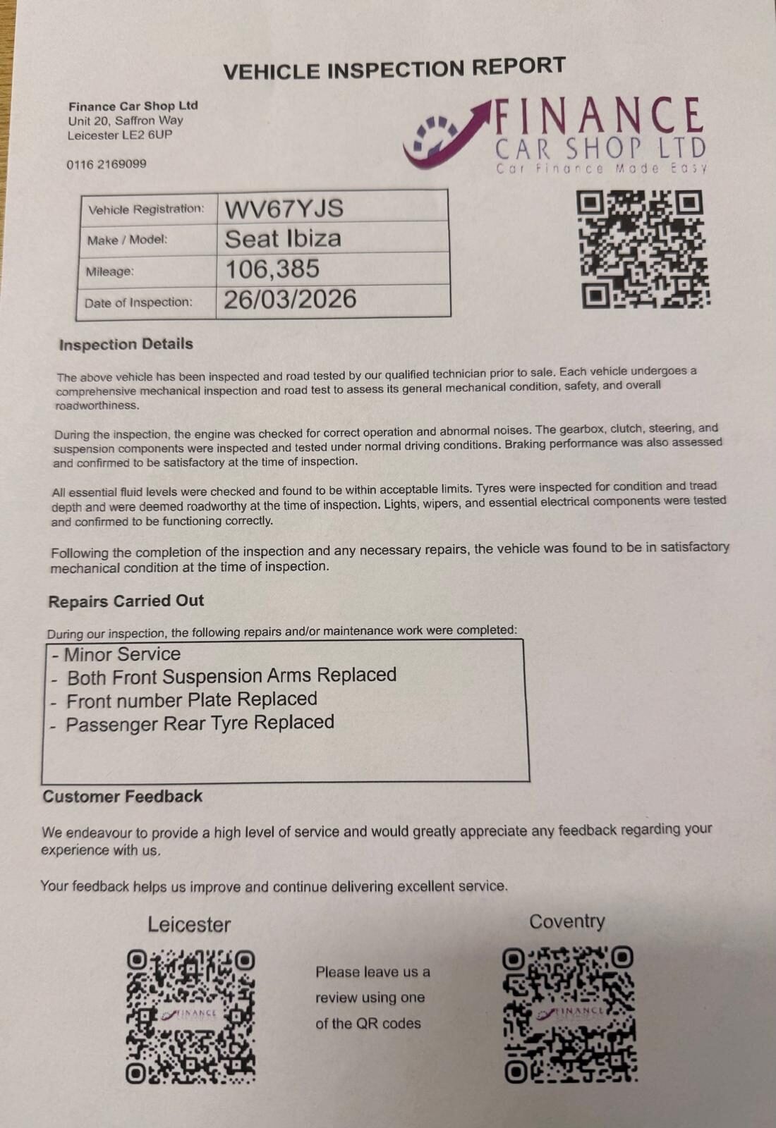 SERVICE HISTORY,JUST SERVICED