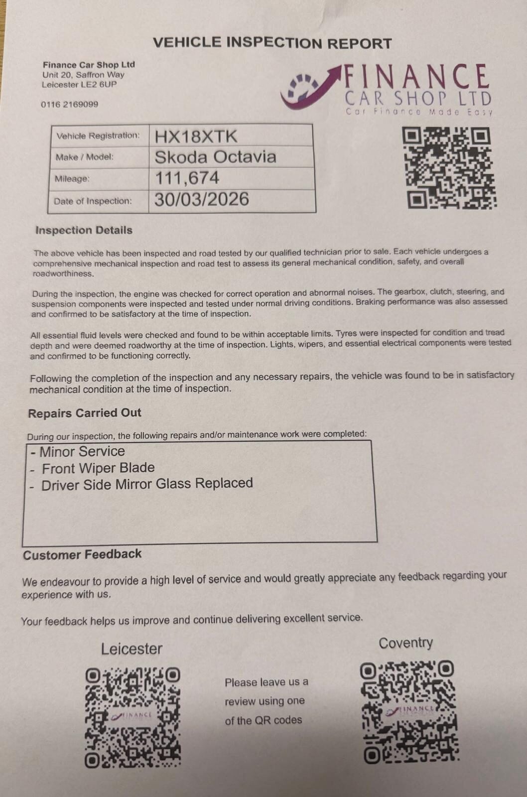 SERVICE HISTORY, JUST SERVICED