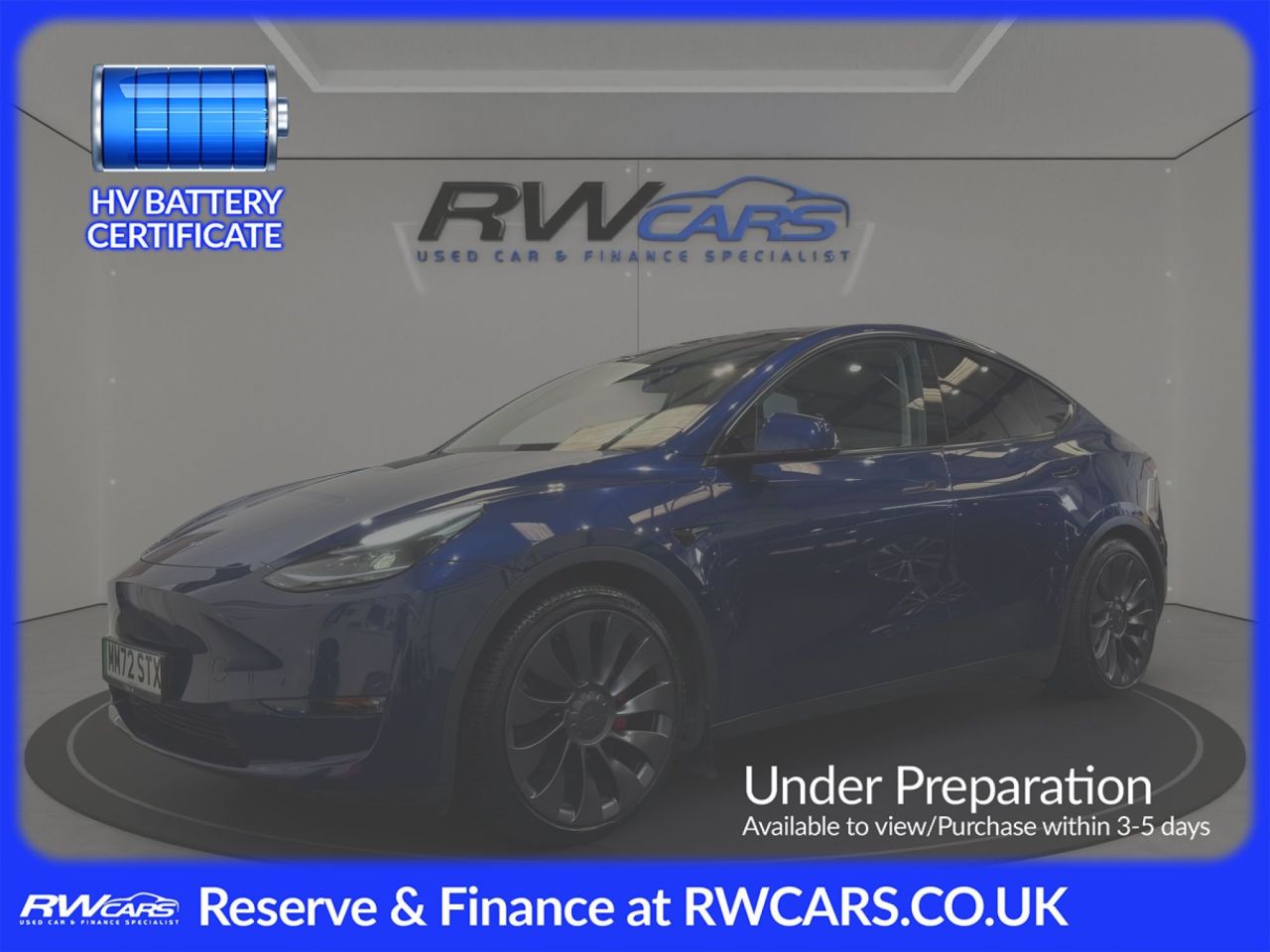 2022 Blue Tesla Model Y available in Derby for £23,989.