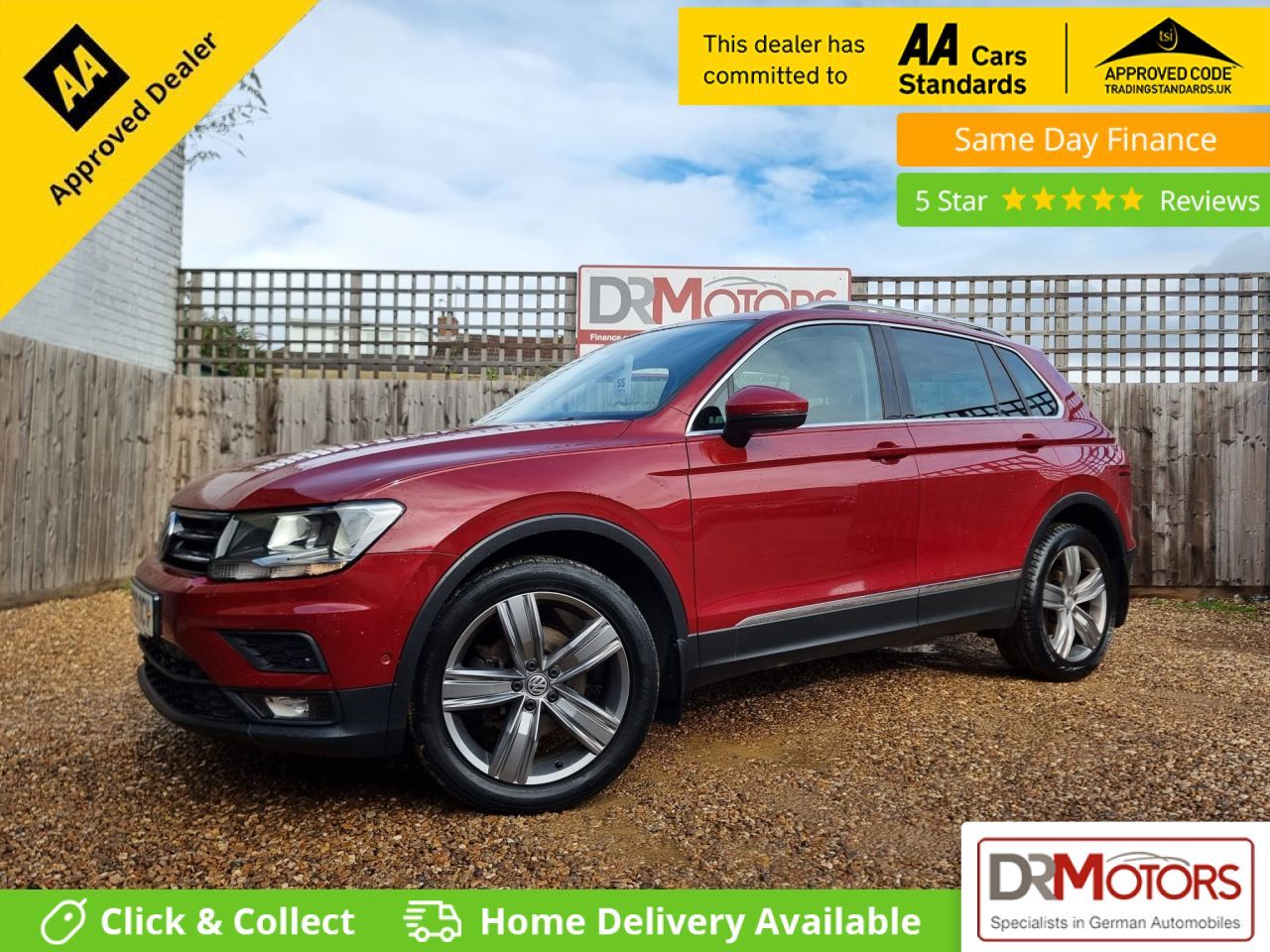 VOLKSWAGEN TIGUAN 2.0 TDI Match SUV 5dr Diesel Manual 4Motion +++ FEBRUARY SPECIAL OFFER – 18 MONTHS NATIONWIDE GOLD WARRANTY INCLUDED IN THE PRICE +++ Offered for sale is this superb Volkswagen Tiguan 2.0 TDI Match, a well-maintained SUV with just 1 former keeper from new and ULEZ compliant, making it ideal for city and long-distance driving alike. Presented in lovely condition inside and out, it boasts a full service history with 6 recorded services and a current MOT valid until October 2026. 4 wheel drive model. This Tiguan is packed with features including satellite navigation, rear parking camera, heated seats, front and rear parking sensors, Bluetooth handsfree, cruise control, DAB radio, USB/AUX connectivity, and stylish 19-inch alloy wheels. The vehicle also benefits from privacy glass, a good-sized boot, and an attractive colour combination. With two keys included, it's a very clean, well-kept example that offers excellent fuel efficiency and low running costs. The first to see will buy. We welcome part exchange and offer a range of finance options, which you can explore further on our website at www.drmotors.co.uk . All our cars are fully HPI clear and come with a 6-month Nationwide Gold Warranty as standard. Extended warranty options are available: 1 year for £399 or 2 years for £599. We have over 150 DR Approved used cars on site, and we're proud to have been named CarGurus Top Rated Dealer for 2020, 2021, and 2022. Debit cards are accepted, and vehicles are subject to a £149 admin fee. Viewings are by appointment only, and we are happy to take a deposit to reserve this vehicle. For more information or to arrange a viewing, please call our Sales Manager Jason anytime—day or night—on 07858 818 903. Pay now and drive away in your new car today. Every effort has been made to ensure the accuracy of this advert. However, errors may occur. Please confirm any details with a salesperson prior to purchase.