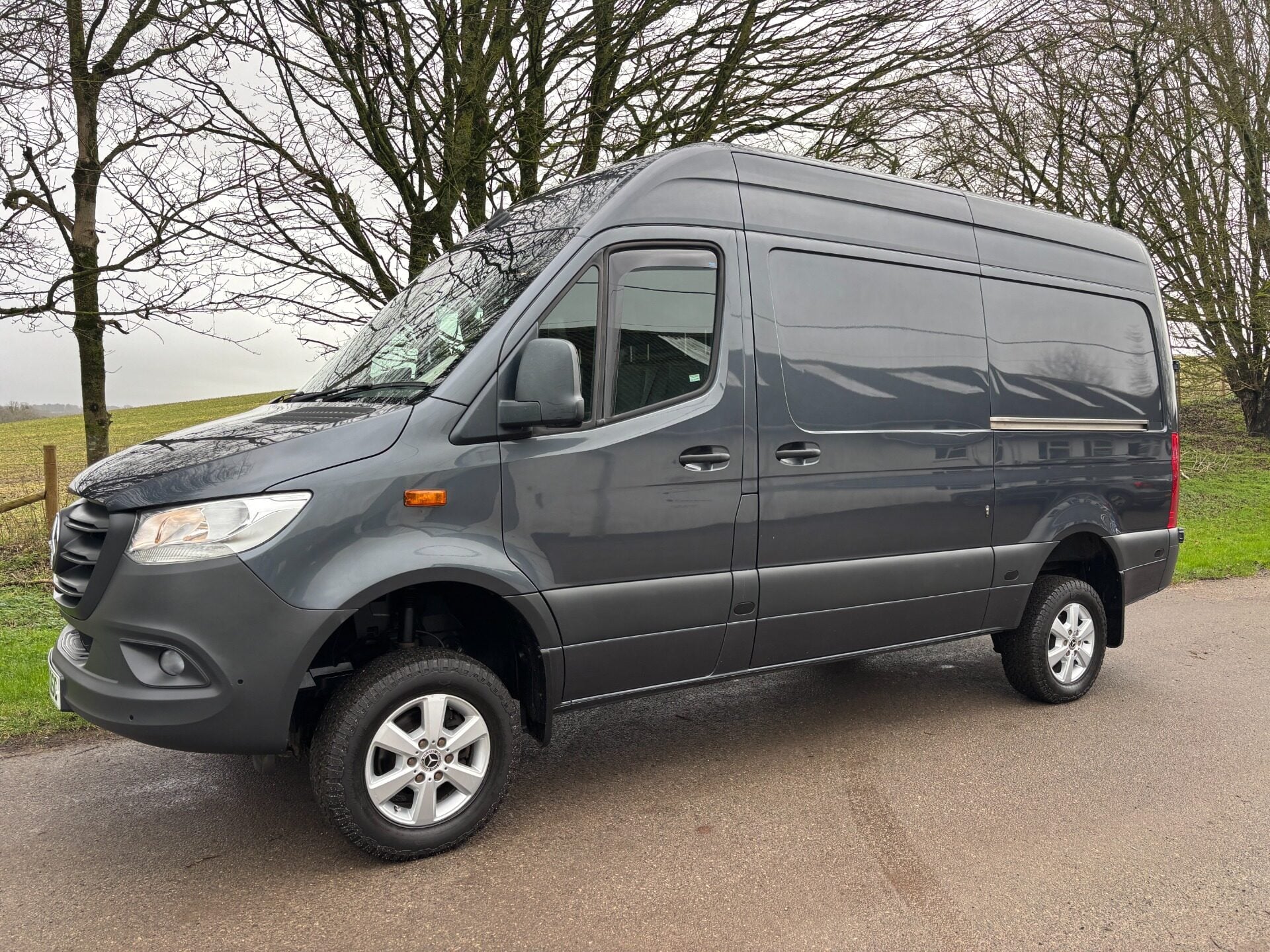 Ideal Commercials present this 2019 Mercedes-Benz Sprinter 316 L2 H2 4x4 Panel Van in Graphite Grey Metallic. This one owner vehicle is fitted with Mercedes 2.1 Cdi 161hp Euro 6 Engine and 6 Speed Gearbox and has covered only 53662 Miles and is supplied with a Full Mercedes-Benz Main Dealer Service History and 3 Months Warranty. Inside you will find Air Conditioning, Satellite Navigation, Rear Parking Camera, Heated Windscreen, Cruise Control, DAB/FM Radio with Apple Car Play/Android Auto, Selectable Four Wheel Drive with Low Range, Electric Windows, Electrically Adjustable & Heated Power Folding Wing Mirrors, Adjustable Steering Column, Leather Upholstery with Height Adjustable Drivers Seat with Arm Rest and Dual Passenger Seat with stowage below. Externally you will find Remote Central Locking, Front and Rear Parking Sensors, Metallic Paintwork, Alloy Wheels, Rear Step with Towbar, Upgraded Security Locks, Side Loading Door and Solid Barn Doors leading to a Ply Lined Cargo Bay with Factory Fitted Bulkhead. To save your time we offer a UK Mainland Delivery Service to help with those busy days. Vehicle supplied HPi Clear with Certificate for Peace of Mind, a Multi Point Inspection and all vehicles are Supplied Fully Valeted. We also offer great low monthly payments spread over 3, 4, and 5 years to suit your circumstances. A full range of accessories available to suit your needs from Towbars, Seat Covers, and Roofracks.